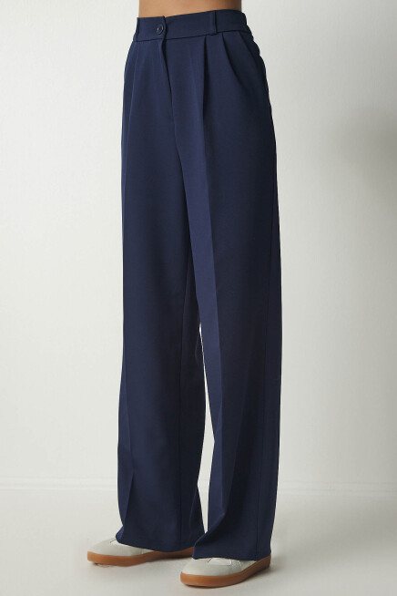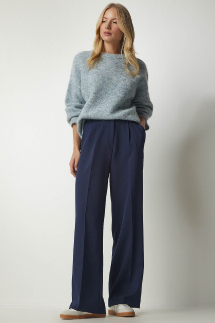 Fermuar ve düğme kapamalı, arkası elastik bel, yanlardan cepli, önden mini pilili, basic palazzo pantolon