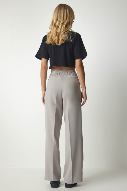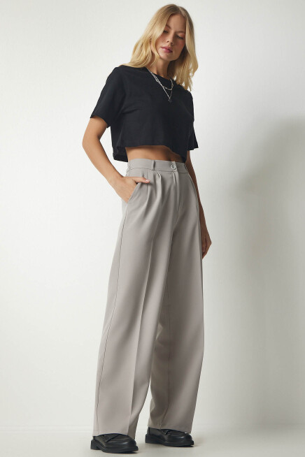 Fermuar ve düğme kapamalı, arkası elastik bel, yanlardan cepli, önden mini pilili, basic palazzo pantolon