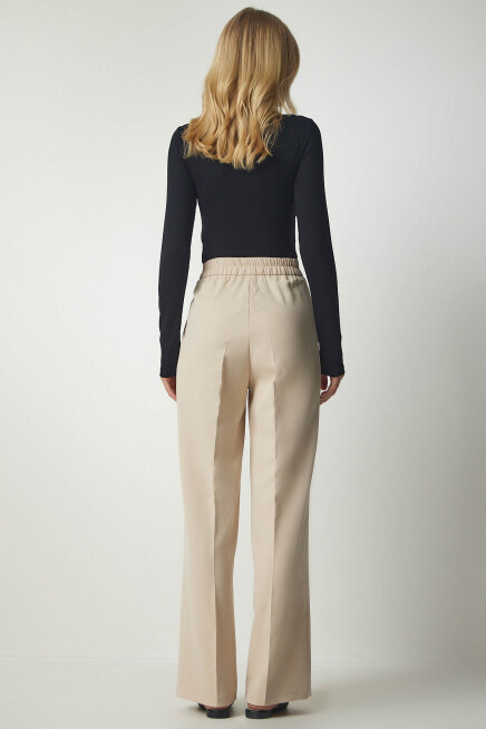Fermuar ve düğme kapamalı, arkası elastik bel, yanlardan cepli, önden mini pilili, basic palazzo pantolon