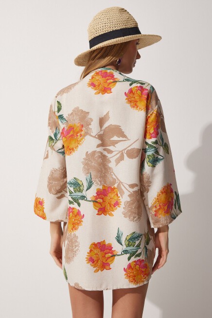 Desenli, Rahat Kalıp, Keten Viskon Kimono.