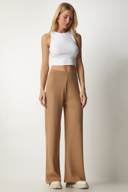 Elastik bel, esnek yapılı, likralı, fitilli triko pantolon
