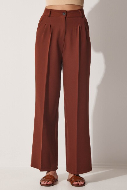 Önü Pilili Detaylı, Fermuar ve Düğme Kapamalı, Likralı, RahatGeniş Paça, Maskülen Dokuma Pantolon