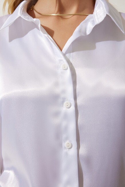 HAFİF DÖKÜMLÜ SATEN YÜZEYLİ GÖMLEK