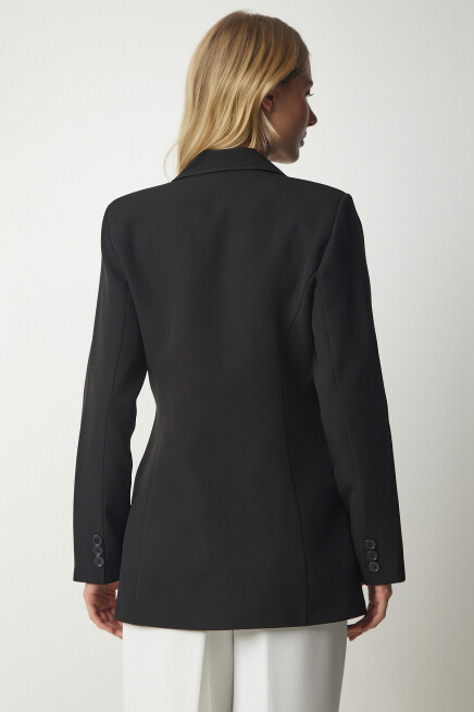 Kruvaze yaka, vatkalı, astarlı, cepsiz, tek düğme kapamalı blazer ceket