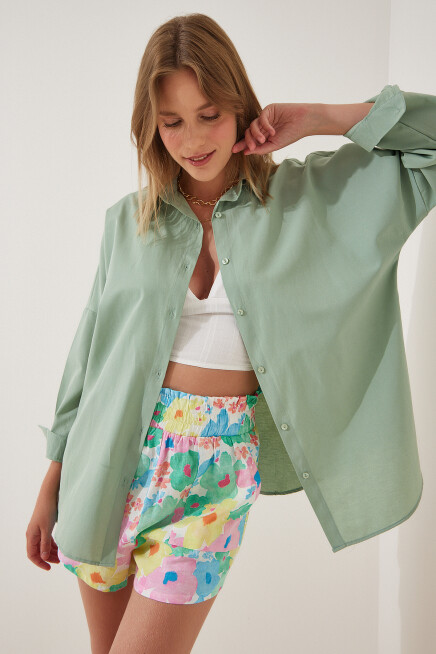 Oversize, Uzun, Kenarları Oval Kesim, Rahat Kalıp Gömlek.