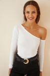 Açık Omuzlu, Fitilli, Likralı Örme Bluz