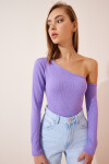 Açık Omuzlu, Fitilli, Likralı Örme Bluz