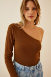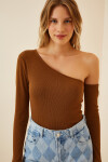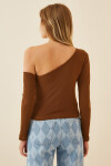 Açık Omuzlu, Fitilli, Likralı Örme Bluz