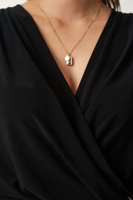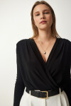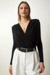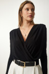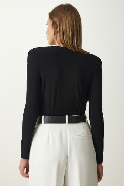 Anvelop yaka, vatkalı, büzgü detaylı, çıtçıtlı örme bluz