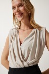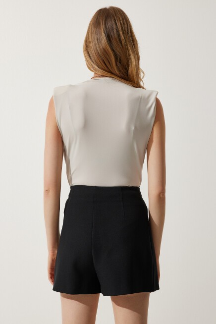 Vatkalı, anvelop yaka, likralı, çıtçıtlı örme bluz
