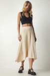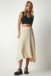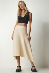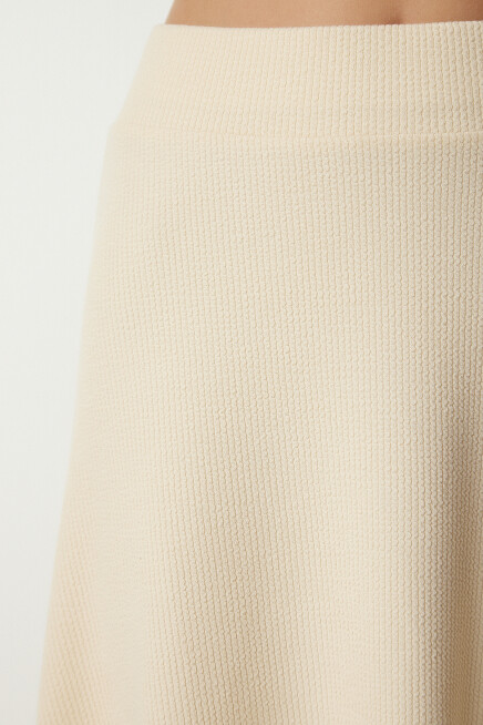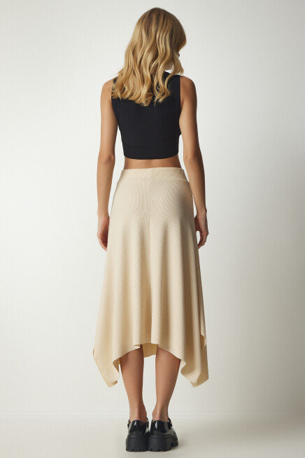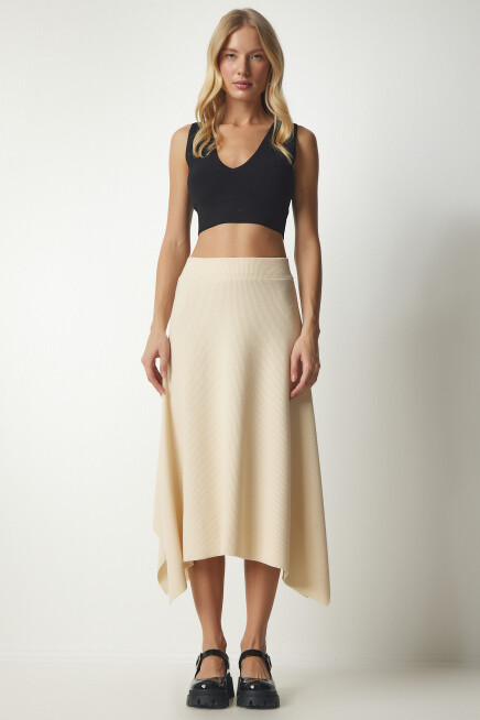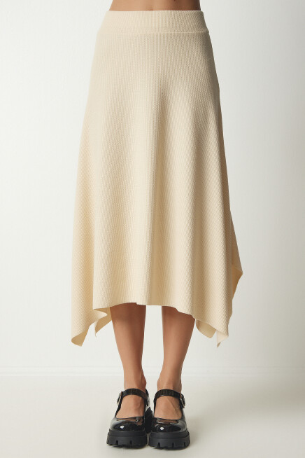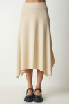 Elastik bel, esnek yapılı, etek ucu lazer asimetrik kesim, rahat fitilli örme etek