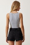 V yaka, askılı, esnek yapılı, örme crop bluz