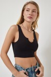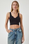 V yaka, askılı, esnek yapılı, örme crop bluz