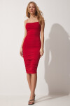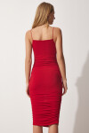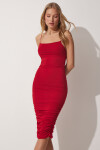 Askılı, Drapeli, Likralı Sandy Örme Elbise