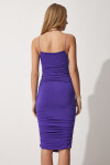 Askılı, Drapeli, Likralı Sandy Örme Elbise