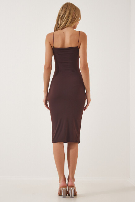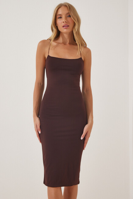 İnce Askılı, Hafif Degaje Yaka, Likralı, Astarsız, İç Göstermeyen, Saran, Örme Elbise