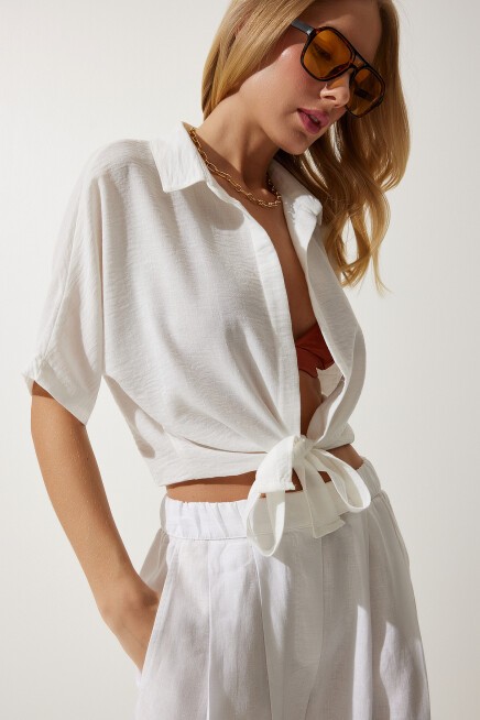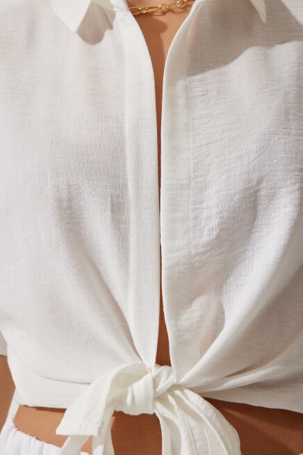 BAĞLAMA DETAYLI KETEN BLUZ