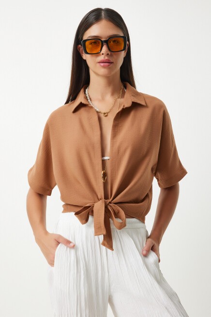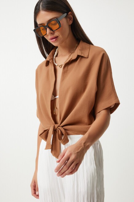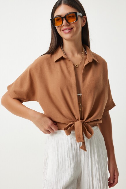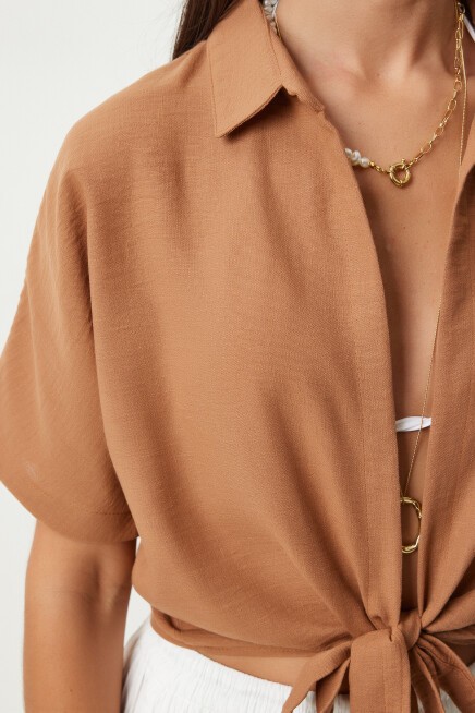 BAĞLAMA DETAYLI KETEN BLUZ