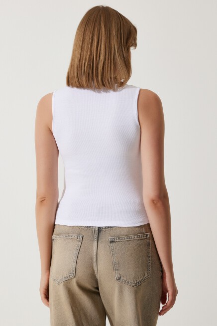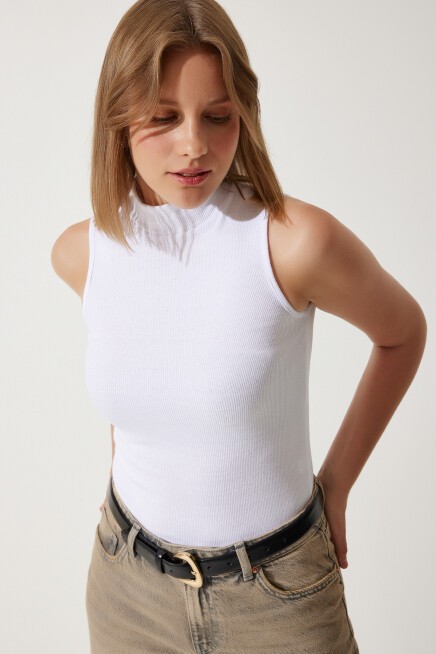 Balıkçı Yaka, Kolsuz, Fitilli, Likralı Örme Bluz Takımı.