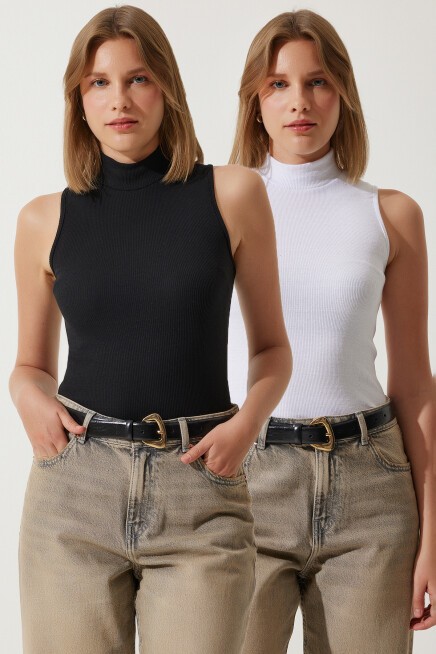 BALIKÇI YAKA KOLSUZ 2'Lİ PAKET ÖRME BLUZ