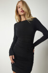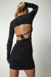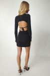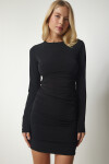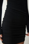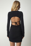 Bisiklet yaka, bağlamalı bel dekolteli, esnek yapılı, büzgülü sandy elbise