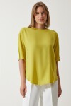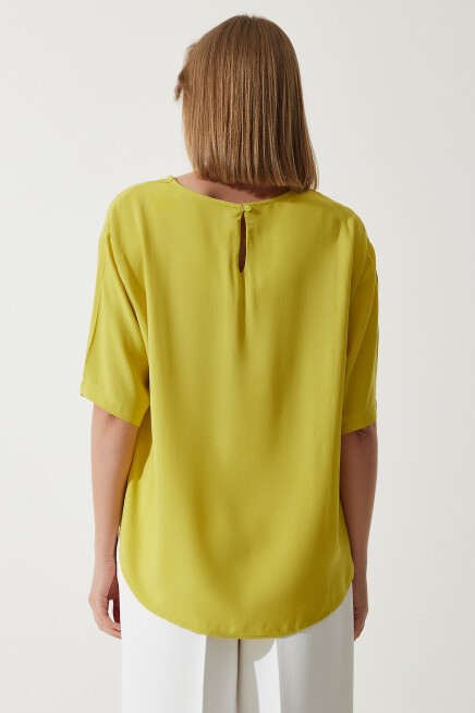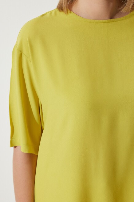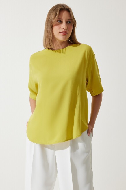 Bisiklet yaka, kısa kollu, yanlardan oval kesim, dökümlü viskon bluz