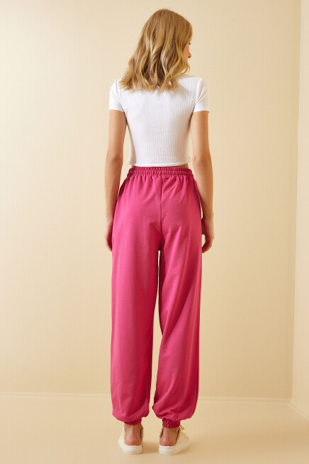 Ayarlanabilir ipli elastik bel, yan cepli, paçaları lastikli, bol, rahat kalıp jogging eşofman altı.