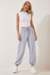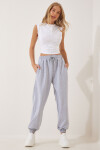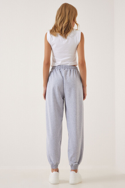 Ayarlanabilir ipli elastik bel, yan cepli, paçaları lastikli, bol, rahat kalıp jogging eşofman altı.