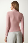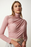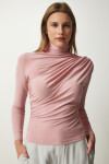 Dik yaka, esnek yapılı, dökümlü, büzgü detaylı sandy bluz