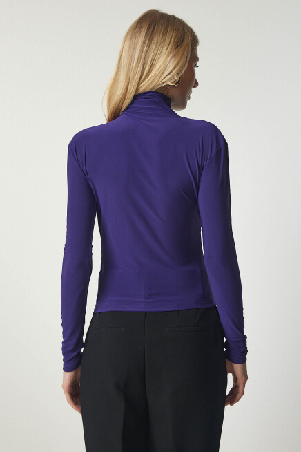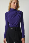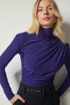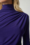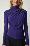Dik yaka, esnek yapılı, dökümlü, büzgü detaylı sandy bluz