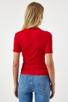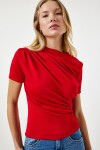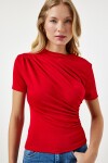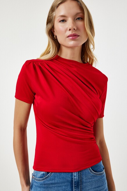 Bisiklet yaka, kısa kollu, esnek yapılı, büzgü detaylı viskon bluz
