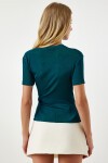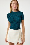 Bisiklet yaka, kısa kollu, esnek yapılı, büzgü detaylı viskon bluz