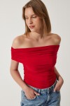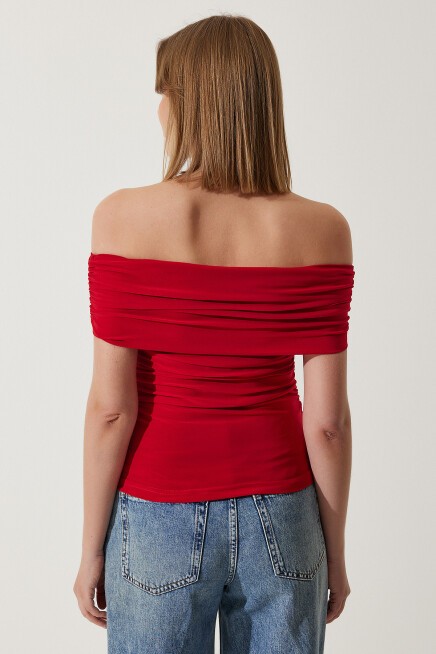 Büzgülü, kolsuz, carmen yaka, sandy bluz