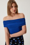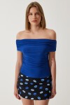 Büzgülü, kolsuz, carmen yaka, sandy bluz