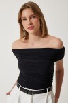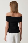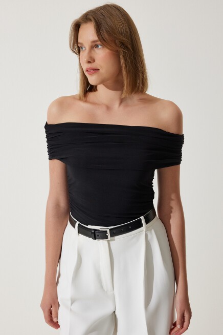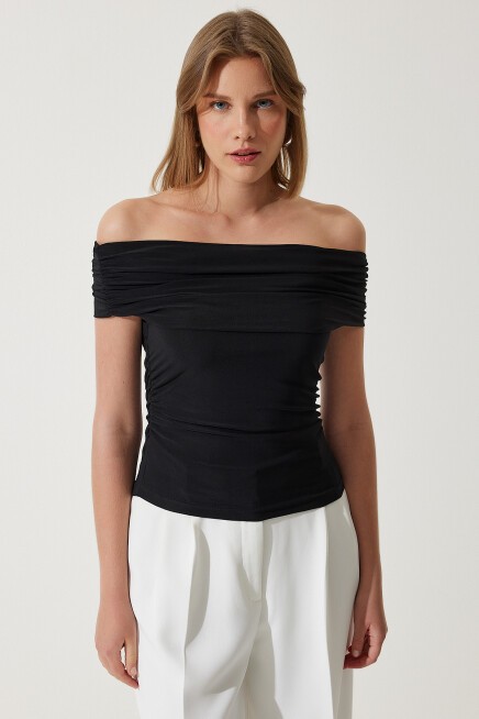 Büzgülü, kolsuz, carmen yaka, sandy bluz