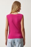 Bisiklet yaka, kolsuz, esnek yapılı, büzgü detaylı örme bluz