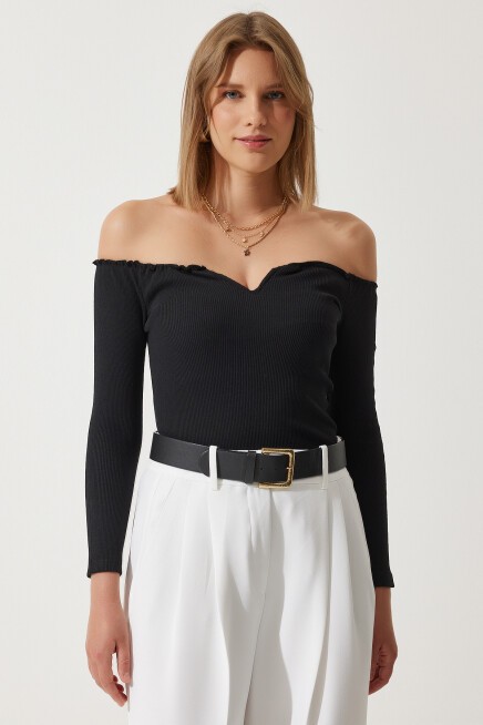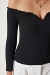 Yakası Büzgülü ve Minik V Yaka Detaylı, Fitilli, Likralı, Çok Yumuşak Dokulu Örme Bluz