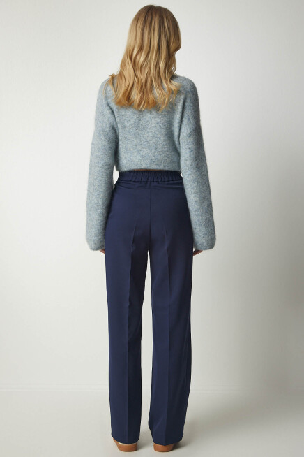 Fermuar ve düğme kapamalı, arkası elastik bel, yanlardan cepli, önden mini pilili, basic palazzo pantolon