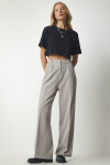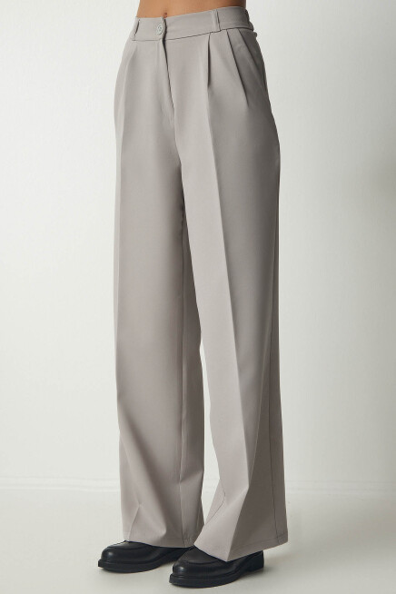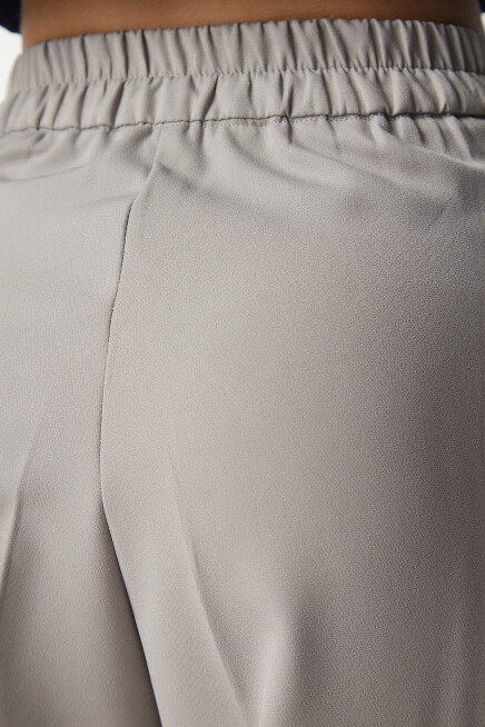 Fermuar ve düğme kapamalı, arkası elastik bel, yanlardan cepli, önden mini pilili, basic palazzo pantolon
