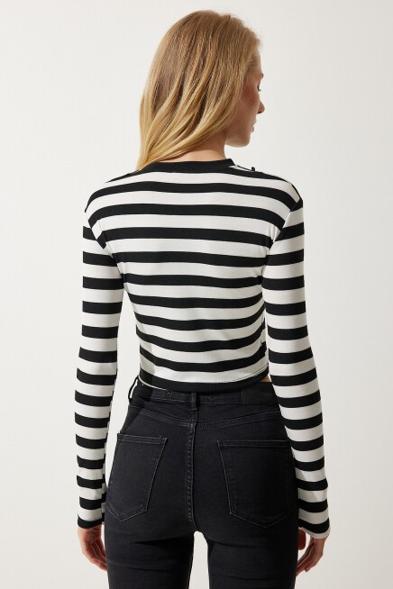 ÇIKARABİLİR KOLYELİ ÇİZGİLİ CROP ÖRME BLUZ