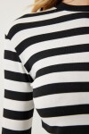 Bisiklet yaka, esnek yapılı, çıkarılabilir kolye aksesuarlı, çizgili örme bluz