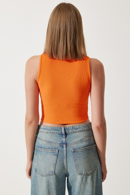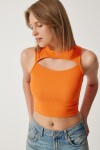 Bisiklet yaka, esnek yapılı, fitilli, cut out detaylı crop örme bluz
