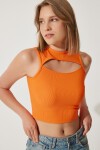 CUT OUT DETAYLI FİTİLLİ CROP ÖRME BLUZ