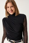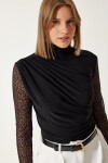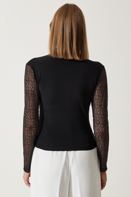 DANTEL KOLLU BÜZGÜLÜ ÖRME BLUZ