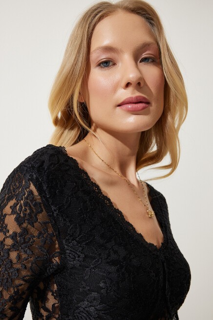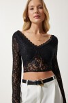 DANTELLİ ŞIK ÖRME CROP BLUZ