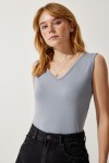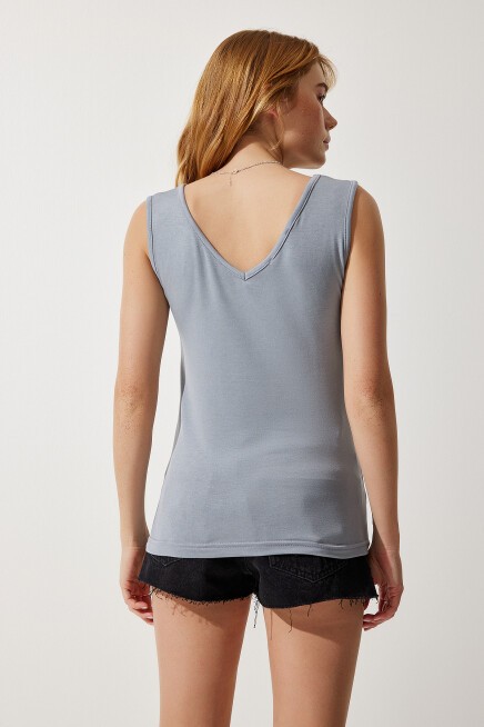 Ön ve arka derin V yaka, iç göstermeyen, likralı viskon bluz