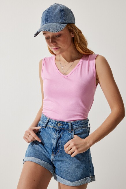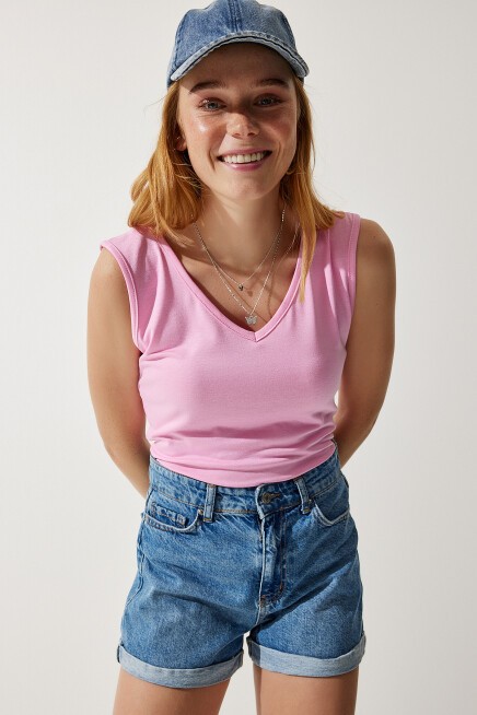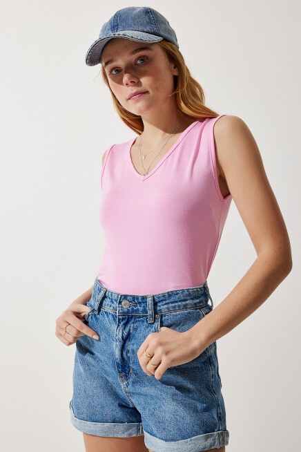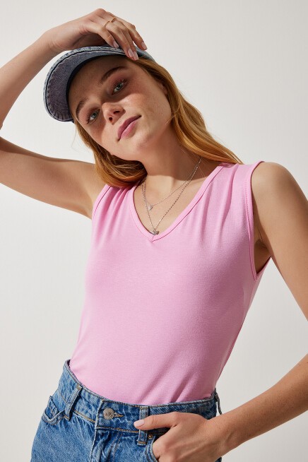 Ön ve arka derin V yaka, iç göstermeyen, likralı viskon bluz
