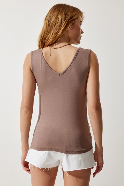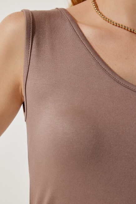 Ön ve arka derin V yaka, iç göstermeyen, likralı viskon bluz