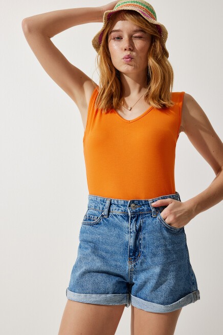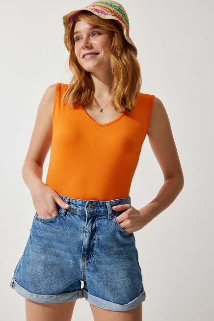 Ön ve arka derin V yaka, iç göstermeyen, likralı viskon bluz