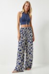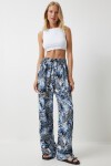 • Elastik belli, bağlamalı, dökümlü, desenli viskon palazzo pantolon